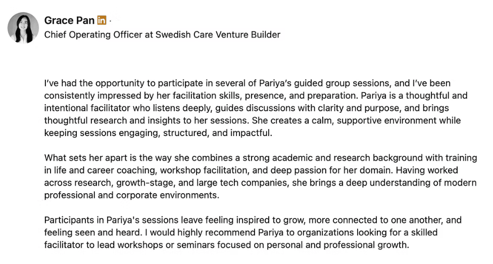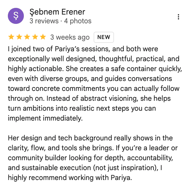 Pariya is an entrepreneur, certified coach, and meditation and mindfulness teacher, with a Ph.D. in tech and design.
