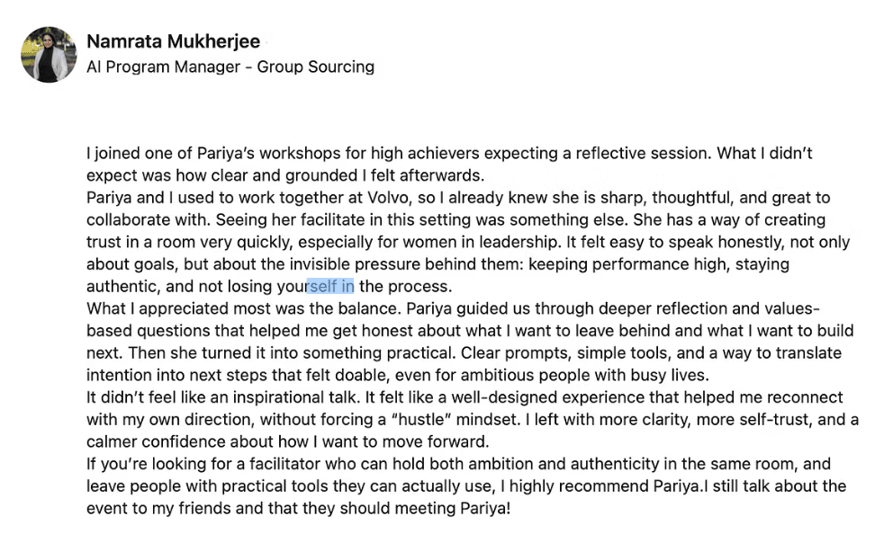 - You're an ambitious woman whose job looks perfect on LinkedIn, but… deep down you’re wondering: Is this really it?